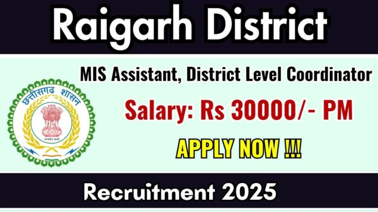 Raigarh District Recruitment 2025 – Apply Offline for MIS Assistant & District Level Coordinator Post